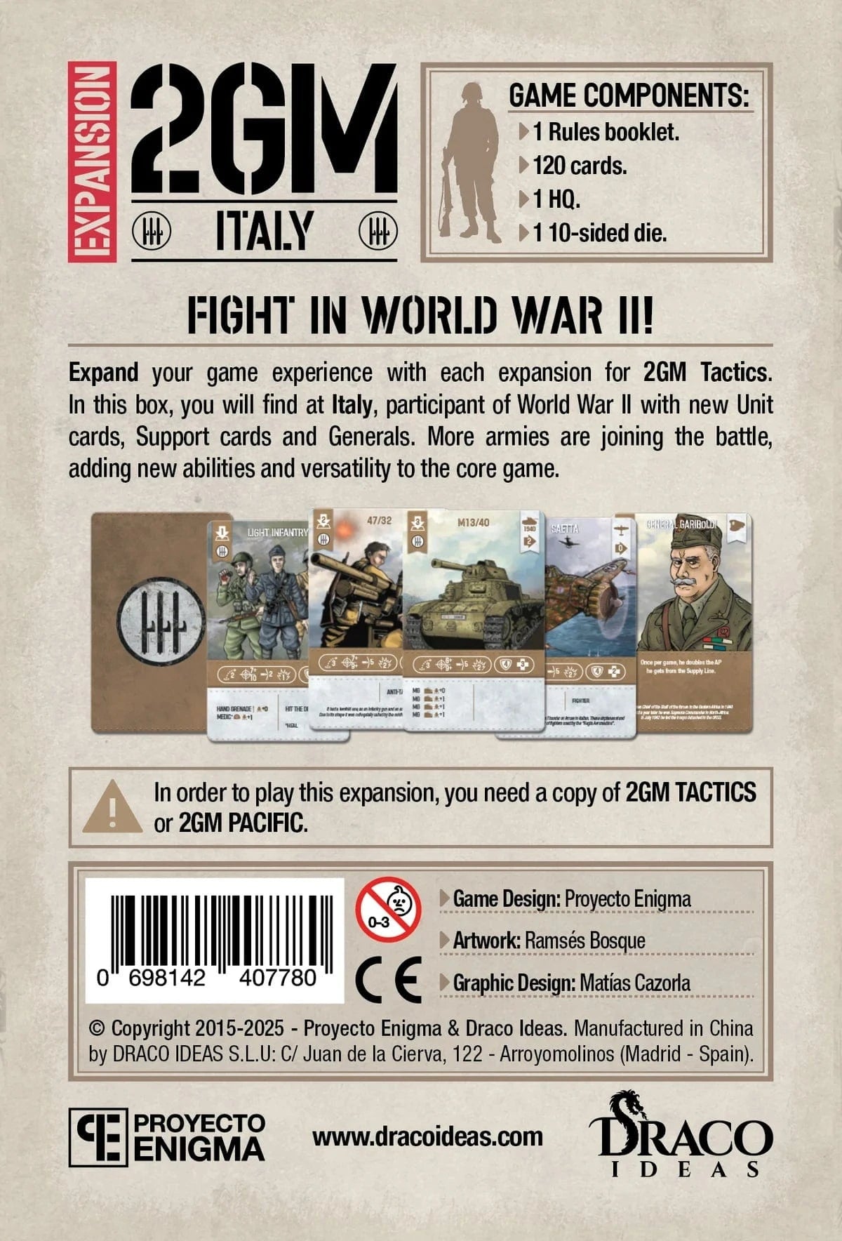Expand your game experience with the Italy expansion for 2GM TACTICS.