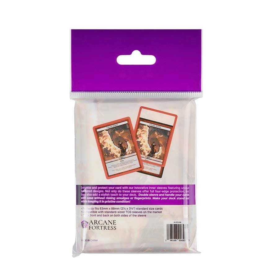 The Synergy Inner Sleeves are designed to enhance your deck’s look while maintaining tournament legality. Featuring a 4mm colored border on the front only, these sleeves cover the existing card border without being visible from the back, making them fully compatible with opaque outer sleeves. Use them to hide outdated borders, create a uniform look, or quickly identify key cards while searching through your deck.