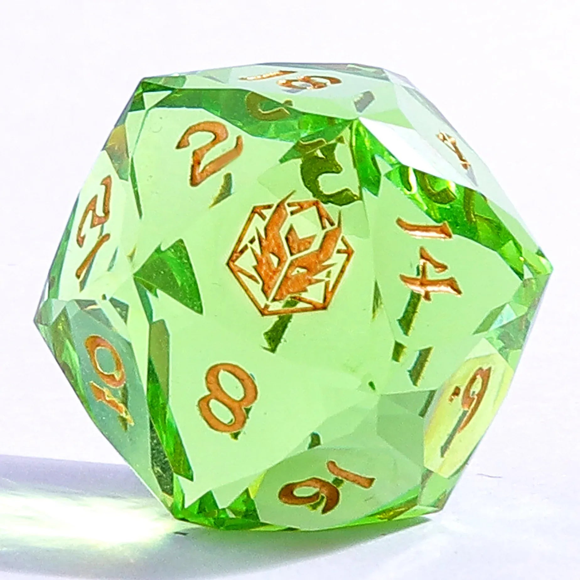 Discover the brilliance of premium craftsmanship with this exceptional sharp-edged resin dice set from HYMGHO. Each die is meticulously hand-poured, sanded, and polished to perfection, then finished with a stunning luster cut that maximizes shine and visual impact. Every set undergoes careful inspection and is thoughtfully packed to ensure it arrives in pristine condition. The luster-cut facets catch light beautifully, creating a mesmerizing display whether your dice are resting on the table or mid-roll. This collection represents HYMGHO's commitment to quality and artistry, combining traditional handcrafted techniques with modern finishing touches. Perfect for collectors and gamers who appreciate both aesthetic beauty and functional precision, these dice elevate your gaming experience with genuine craftsmanship you can see and feel. The BRR115 pattern showcases the intricate detail possible when passion meets skill.
