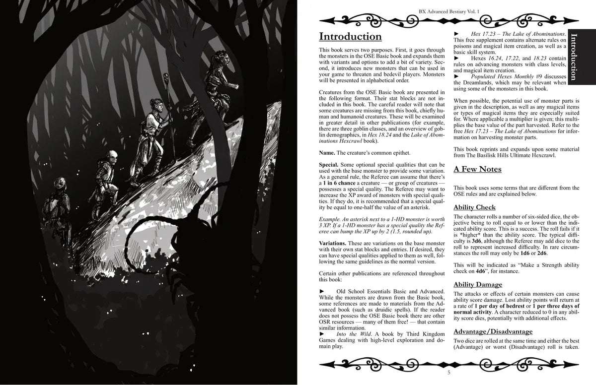 The BX Advanced Bestiary, Volume 1, takes the monsters in the OSE Basic book alphabetically and expands on them, offering variants, special abilities that can be added, and flavor and background to make them more interesting.