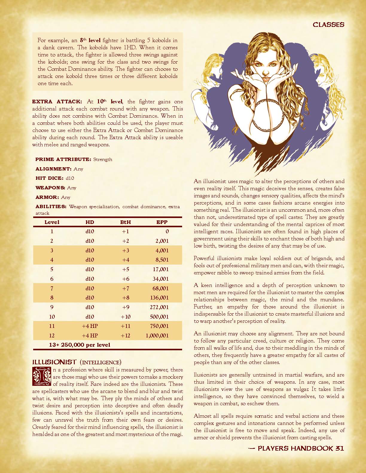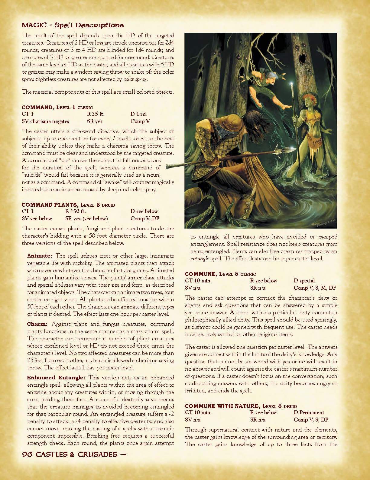 Magic: Magic unleashes a whole new dimension of play at the table top and C&C has plenty of it. Here we explore the four major spellcasters, Cleric, Druid, Wizard, and Illusionist, how they cast spells, and the spells they cast. From the Cleric’s spiritual weapon to the Illusionists’ healing ability, it is all here.