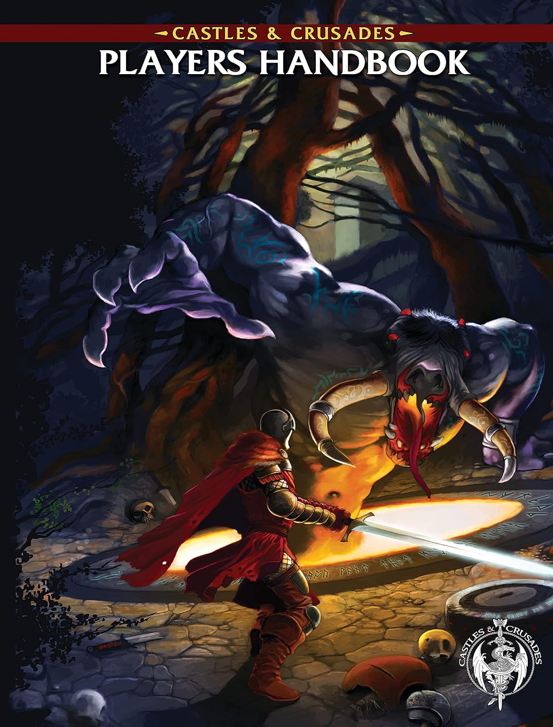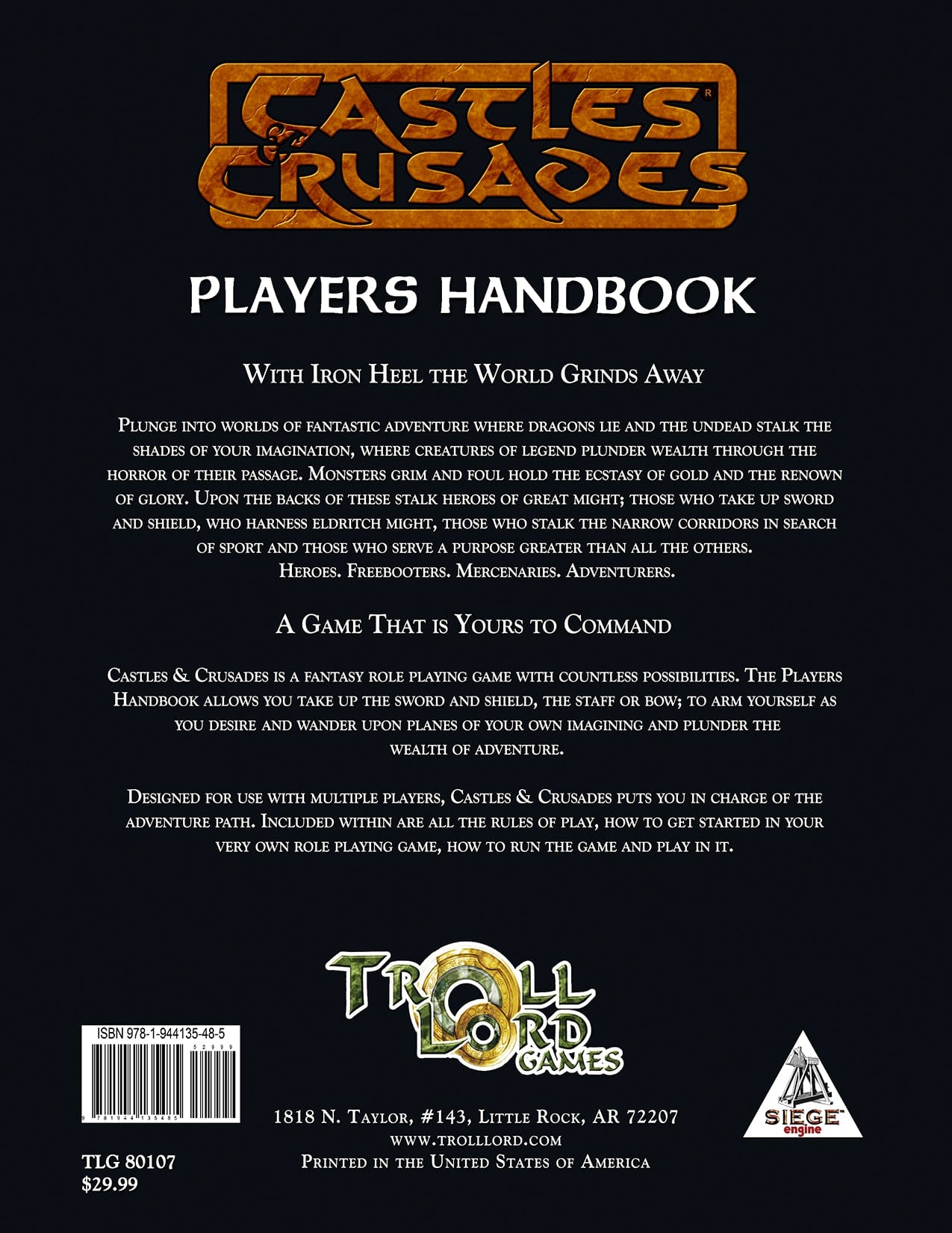 Castles & Crusades is a fantasy table top role playing game (#ttrpg) that is quick to learn, easy to play, and allows you a wide range of customization. With our simple yet diverse attribute-based rules system, players choose among 13 archetypal character classes and 7 races with which to create their characters. Spells, equipment, fast-paced combat rules, and all essential information needed to play a game of Castles & Crusades are in the Players Handbook.