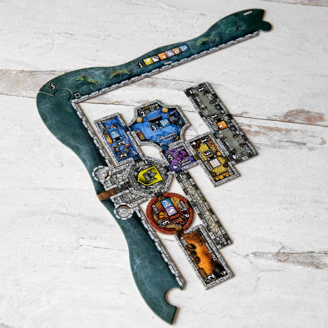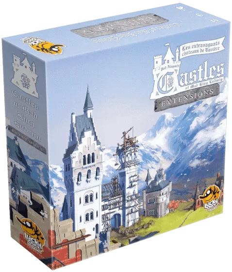 Castles of Mad King Ludwig Expansions includes every previously released expansion for Castles of Mad King Ludwig and a new one, all compatible with the 2nd edition. Renovations: Rework your castle with special double-room tiles that are placed directly on top of existing rooms. Towers: Special rooms that provide an additional end game reward. Moats: Surround your castle for extra VPs for each of your rooms. Swan Tokens: Collect sets of swan tokens that can be converted to money or end game VPs. Secret Passages: Double connection bonuses and fit rooms into hard to reach spaces. Royal Decrees: Gain a unique, asymmetric player power at the start of the game. New Favors & Bonus Cards: Increase the variety of end game goals. 5th Player: Add a 5th player to your game.