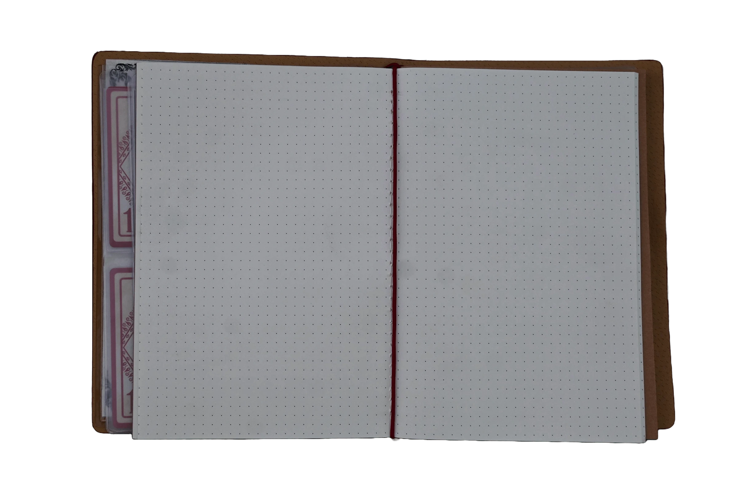 Inside, the journal combines thoughtful utility with high-quality materials. It includes a dry-erase character sheet insert for easily updating stats and leveling on the fly, along with clear mylar sleeves perfectly sized for spell and equipment cards. Players will also find dot-graph paper ideal for dungeon mapping or tactical layouts, as well as thick, high-grade drawing paper suited for journaling, sketching, and campaign notes.