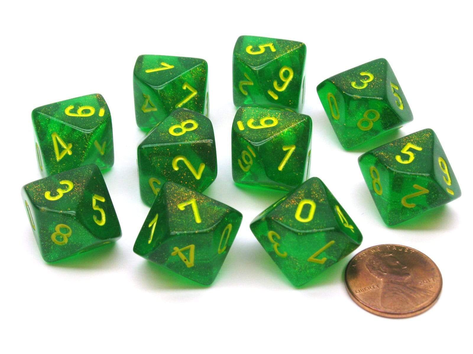 CHX27365 - Chessex Set of Ten d10 Borealis Maple Green/Yellow - Holiday Sale