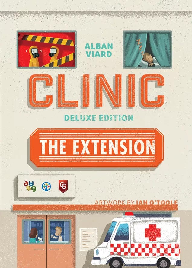 The brand newest CliniC: Deluxe Edition the Extension contains all expansions (at least 12 expansions) already released in the medical dossier #1, medical dossier #2 and medical dossier #3, with new rules, new components, new lay outs and new tiles with new graphics and illustrations from Ian O'Toole.
