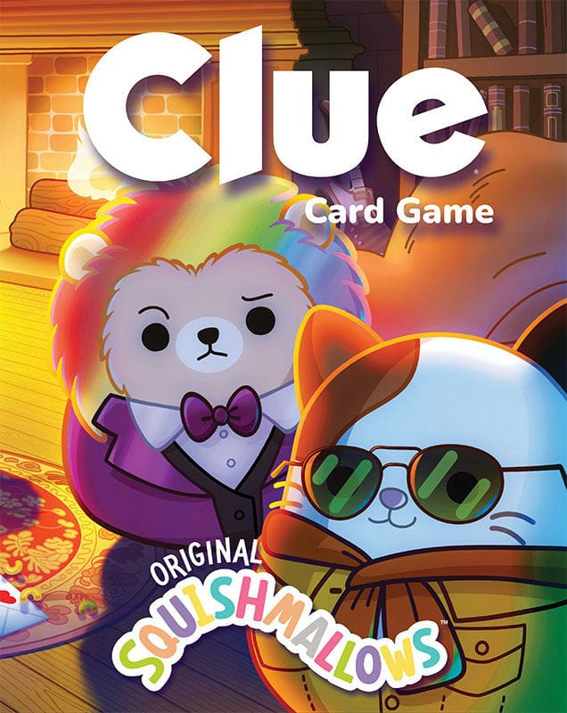 WINSTON’S MAC N’ CHEESE IS MISSING! Your favorite Squishmallows have brought something special to share with their friends at a big party in a mysterious mansion. Suddenly, the lights go out! When the lights turn back on someone has stolen Winston’s Mac n’ Cheese and no one will confess. In Clue® Card Game: Original™ Squishmallows, search the mansion top to bottom as Cam, Emily, Leonard, Lola, Zozo, and Avery to discover WHO ate the mac n’ cheese, WHAT item was left as evidence, and WHERE they perpetrated the delicious crime.
