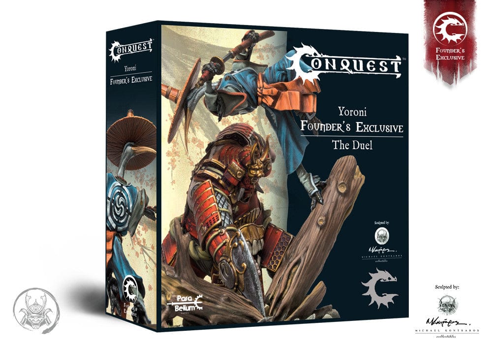 Locked in an epic duel to the end, the two Daimyos clash with unmatched intensity—Earth versus Wind, Chi versus Fu, raw power against agility and precision. This Founder's Exclusive includes two Yoroni Brute Models that can be used either as Daimyos following the Chi and Fu Ideals respectively, or as Kami Ayakashi and Tengu Bushi Modular Regiment Leaders. The Kami in the set can also be fielded as an Oyabun.
