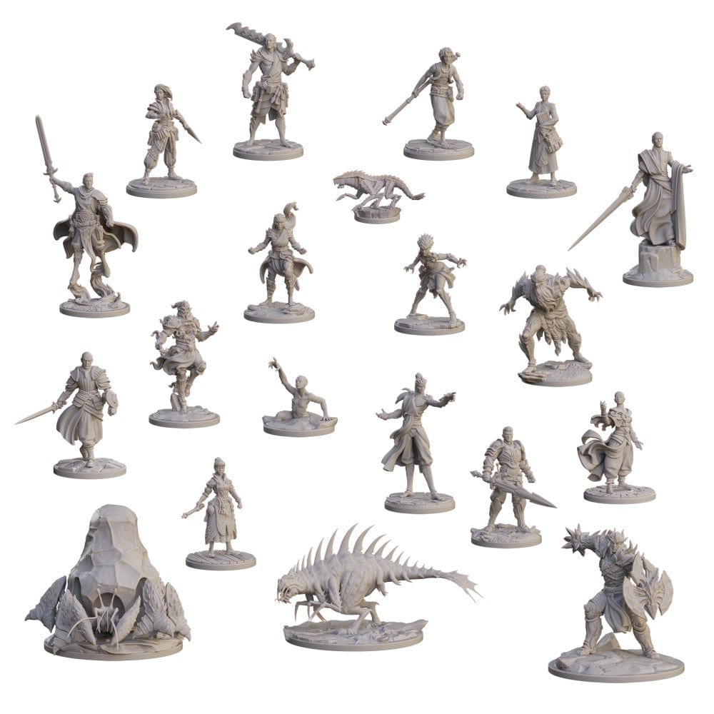 In an age of storms and war, the Knights Radiant must stand again! This collection of miniatures is optimized for the Cosmere Roleplaying Game. Step into a universe of adventure and Investiture with this set of original heroes, villains, and creatures from The Stormlight Archive! Includes 20 miniatures.