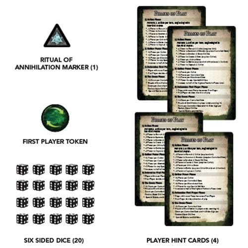 The game has a huge map of Earth to fight over, and 72 high-quality figures, all drawn from the dread Cthulhu Mythos, including Cthulhu himself, Cultists, Shoggoths, and many other horrors. Miniatures are 28mm scale and compatible with other table top miniature games.