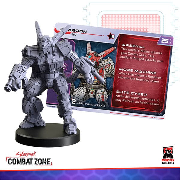 Each model in the set is paired with a Full Body Conversion (FBC) card, detailing unique abilities and stats that reflect its advanced cybernetic design. These tarot-sized cards function much like gear cards, seamlessly replacing your Character’s model without altering their stat card. Instead, the FBC grants powerful upgrades and new combinations of abilities.