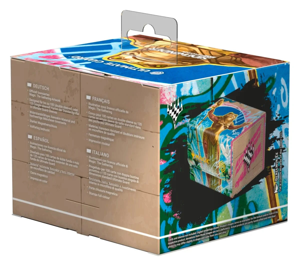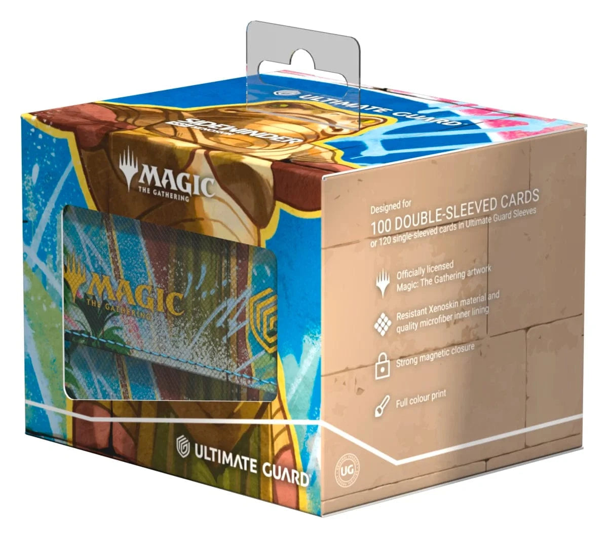 The Sidewinder 100+ Xenoskin is a high-quality TCG deck box that offers premium card protection thanks to its resistant Xenoskin material, microfiber inner lining, and strong magnetic closure, while still granting easy and convenient access to the deck inside. The deck boxes are printed in full color with officially licensed artworks from Magic: The Gathering’s upcoming set “Aetherdrift”. The Sidewinder 100+ Xenoskin is optimized to hold 100 double-sleeved or 120 single-sleeved cards in Ultimate Guard sleeves.