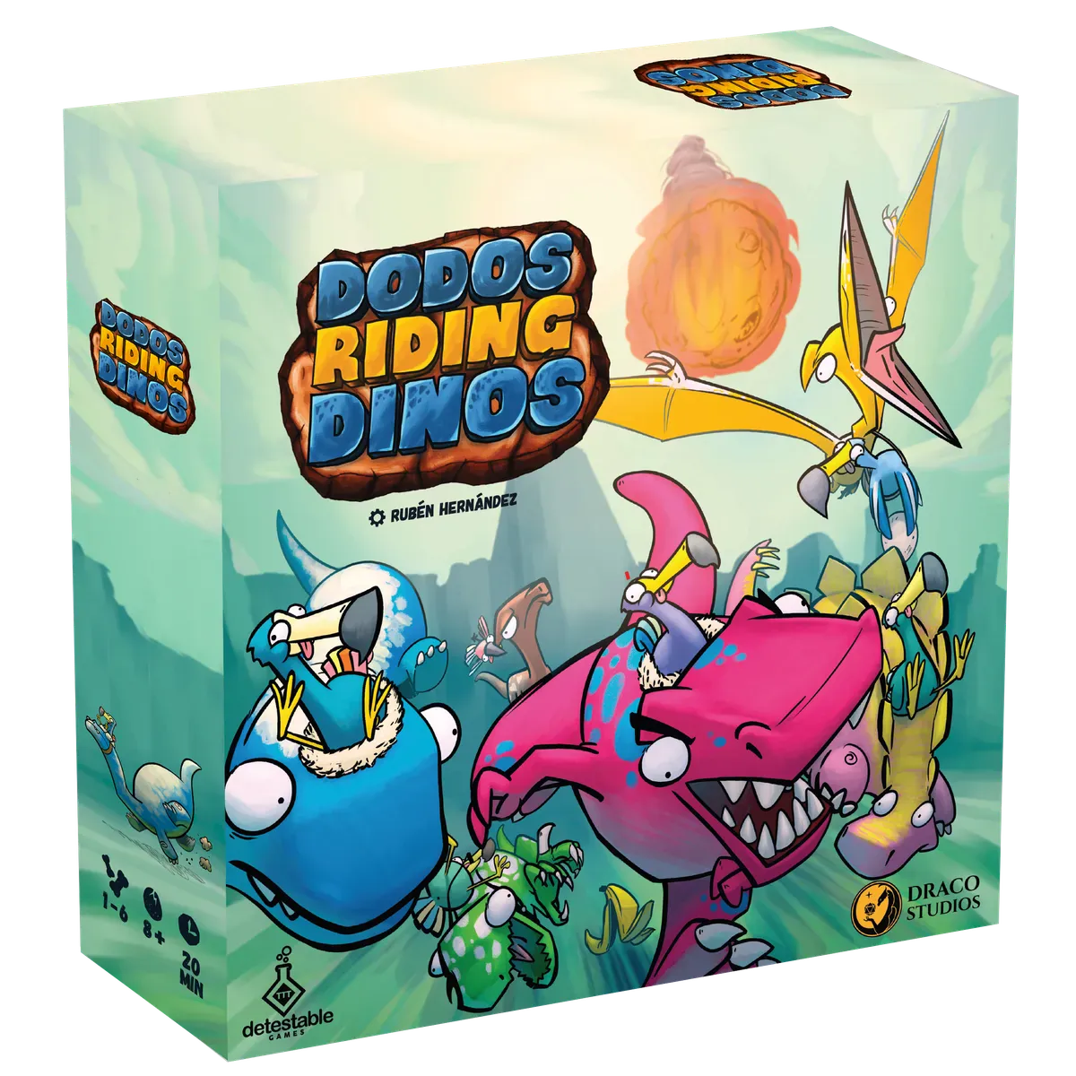 One to six players compete in Dodos Riding Dinosaurs, a competitive family dexterity game that presents a crazy race.