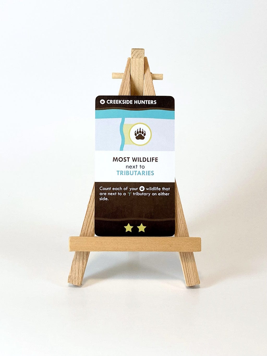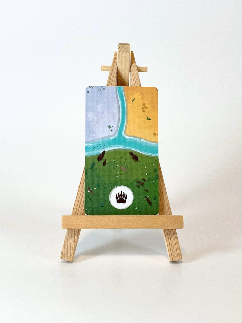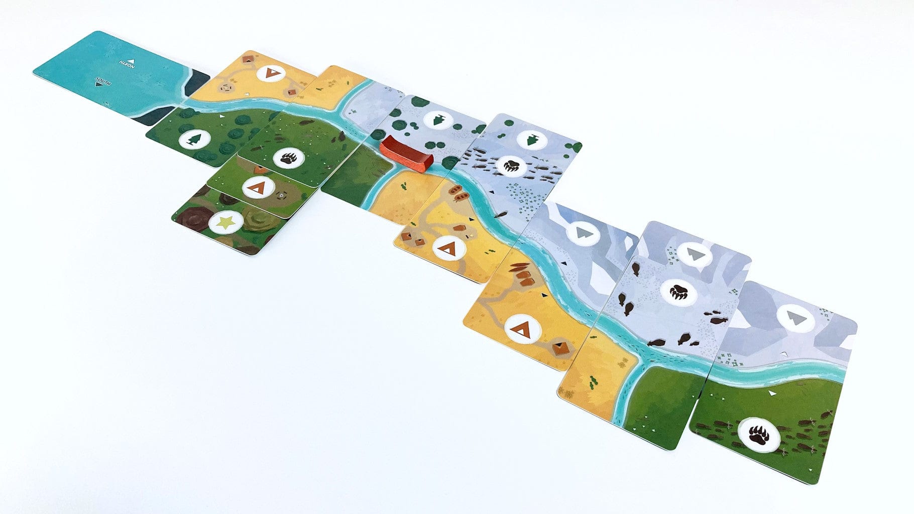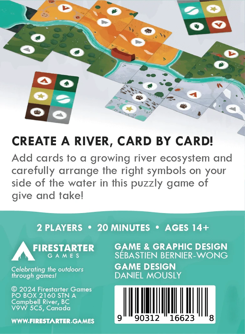 On your turn, you'll add a card to the growing river ecosystem; either extending the flow of water or the existing banks. You'll be competing over a different set of objectives in each game, the resulting rivers each having their own personality.