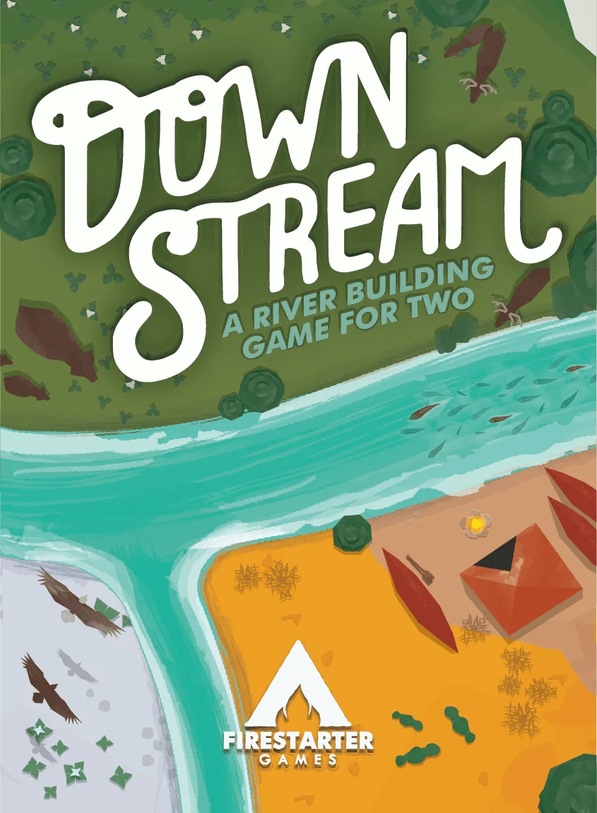 Downstream is a 2 player card laying game where players create a river together, attempting to enrich their own shoreline without helping their opponent accross the river.