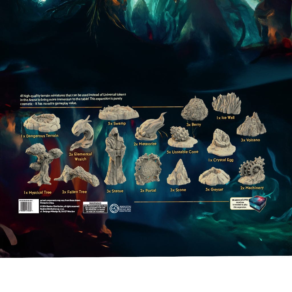 - 41 DETAILED TERRAIN MINIATURES: This expansion includes 41 high-quality terrain miniatures that add immersion to your Dragon Eclipse experience by replacing Arena Tokens and other objects.