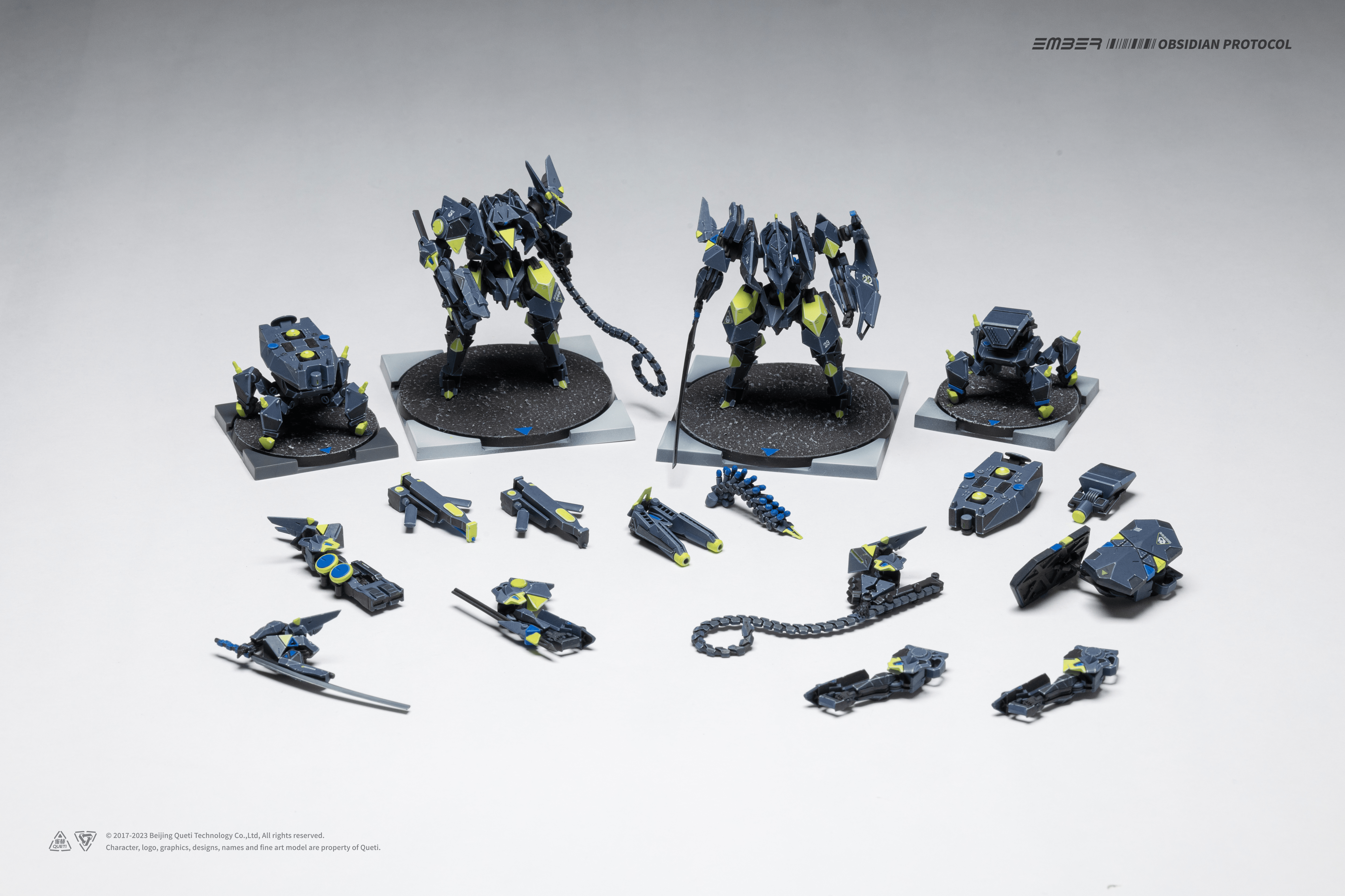 Obsidian Protocol has four different modular sectors. For instance, mecha (as the biggest and core modular sector, it has three kinds of mechas itself. you have different ways to control them.),hive mind, ship and army. Each modular sector can be a unique game. Players can also choose two or more modular sectors to play, which brings better game experience. The core parts of Obsidian Protocol are assembling and fighting. Different modular sectors have different ways of assembling. For example, players can use different parts to assemble a mecha or choose different types of arms, vehicles to form different armies to fight. After assembling, with the attribute the parts provide, players can create their own strategies, brings more fun to the game. No game board is used, players make or purchase their own scenery.