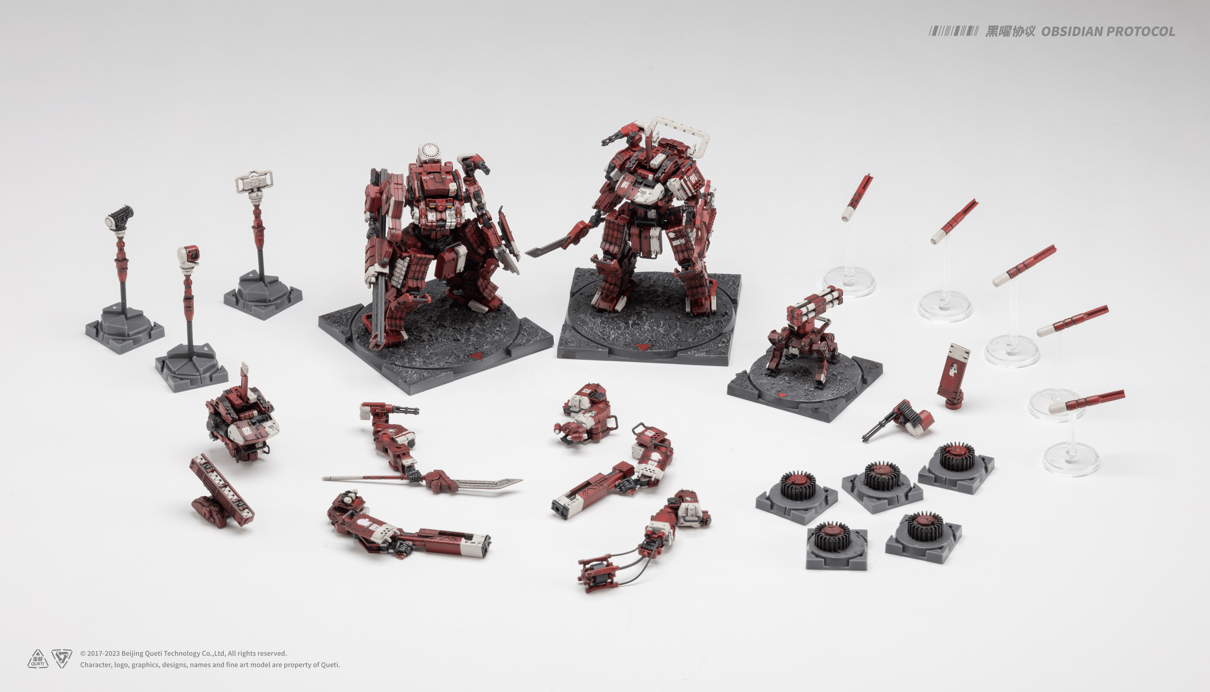 The Heavymetal Pack contains 2 Mechs, 1 Tactical Drone, and replaceable modular parts with a focus on firepower and defence, including heavy railguns with destructive capabilities, large melee weapons, in addition to heavy armoured artillery cores, and a wide range of offensive backpacks.