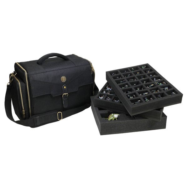 The bag is reinforced with thick padded walls that protect your miniatures from drops, impacts, scratches and from the elements. The exterior is a high-quality nylon fabric with a rugged texture that looks professional with the brass metal hardware and zippers. The base of the bag is lined with a water-resistant material that prevents moisture from seeping into your bag when placed on damp or wet surfaces.