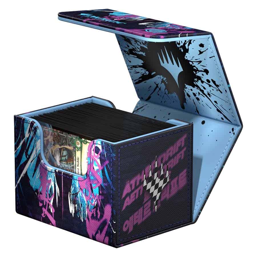The Sidewinder 100+ Xenoskin is a high-quality TCG deck box that offers premium card protection thanks to its resistant Xenoskin material, microfiber inner lining, and strong magnetic closure, while still granting easy and convenient access to the deck inside. The deck boxes are printed in full color with officially licensed artworks from Magic: The Gathering’s upcoming set “Aetherdrift”. The Sidewinder 100+ Xenoskin is optimized to hold 100 double-sleeved or 120 single-sleeved cards in Ultimate Guard sleeves.