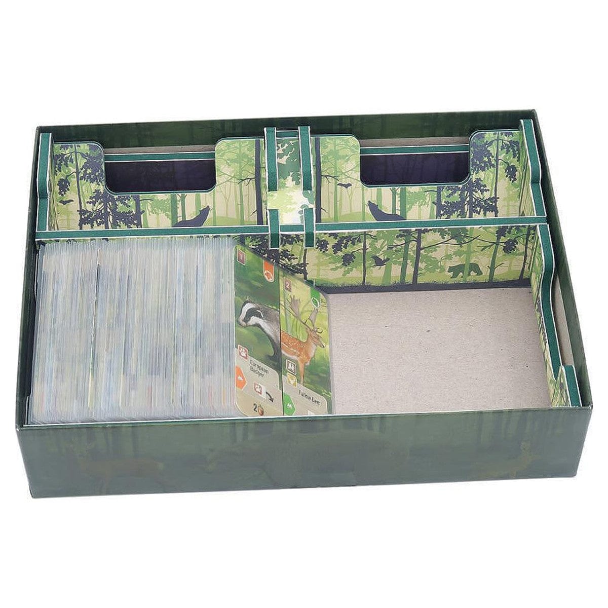 Full colour insert compatible with Forest Shuffle® including space for the Alpine®, Woodland Edge®, Exploration® expansions. The design provides both efficient storage and improved game play. The rules and boards act as a lid on top of the tray. The full colour print really brings the insert to life, tying in with the theme of the game.