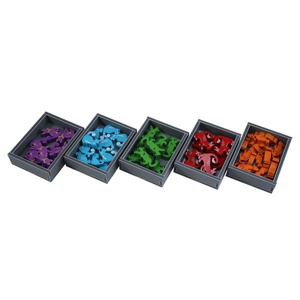 Insert compatible with The Isle of Cats® , including the Late Arrivals® and Kickstarter Pack® expansions. The design provides both efficient storage and improved game play. Many of the trays can be utilised during the game, and they greatly aid set-up and clear-away times.