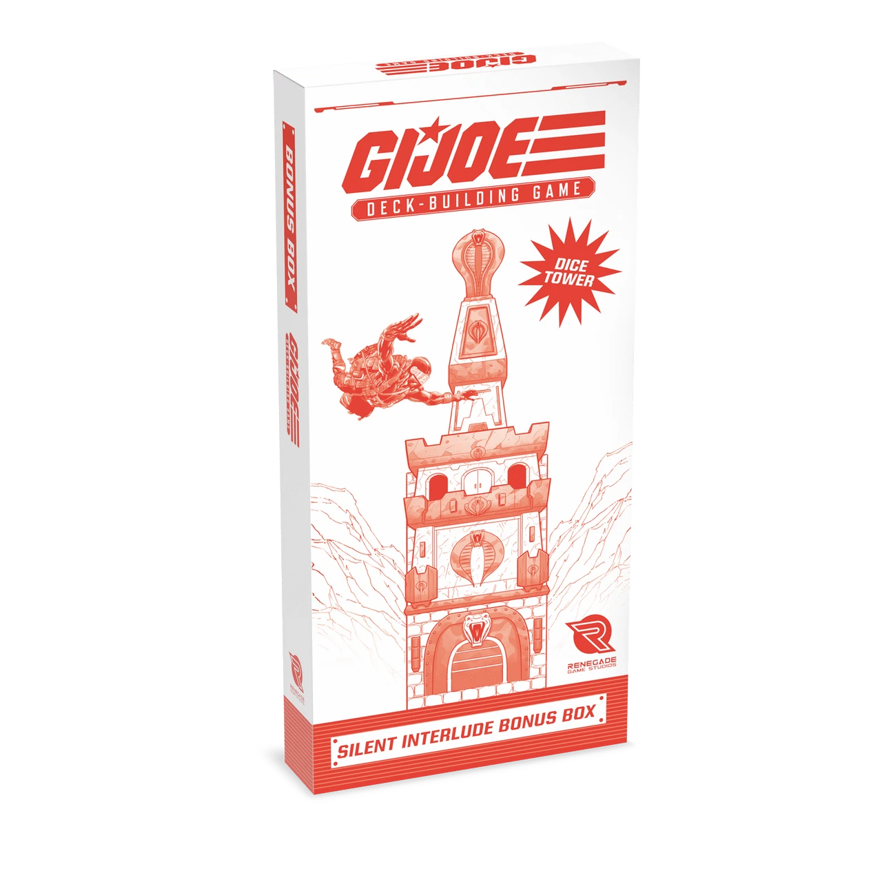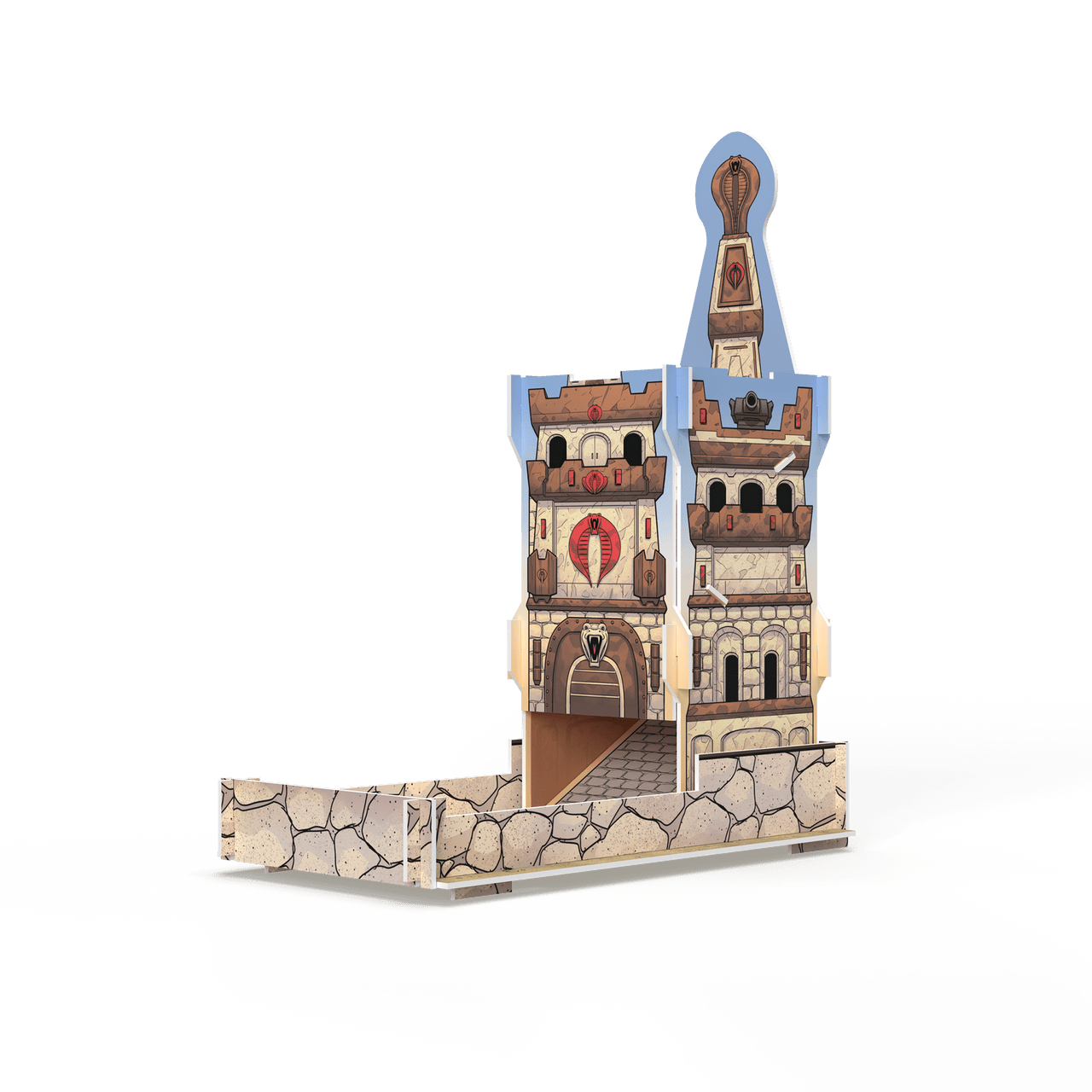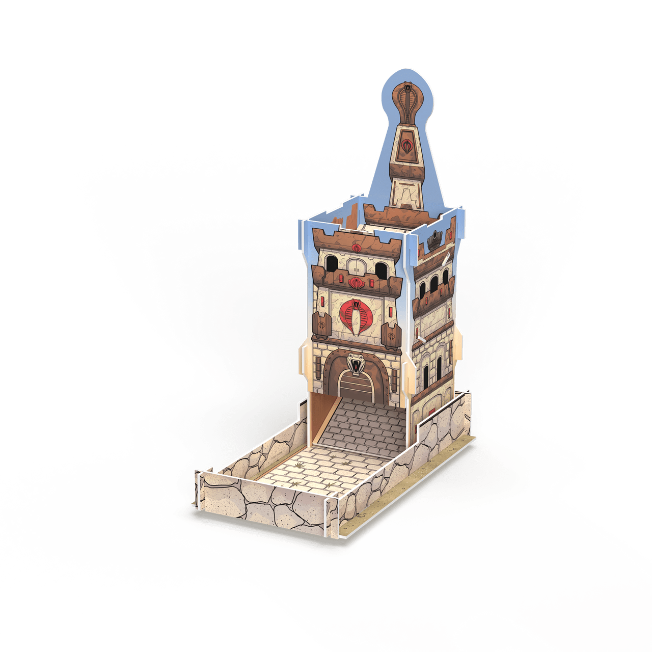 Introducing the ultimate accessory for your G.I. JOE gaming experience; A constructible cardboard dice tower! Build the Cobra Silent Castle to be used with the G.I. JOE Deckbuilding Game, G.I. JOE Mission Critical, or the G.I. JOE Roleplaying Game!