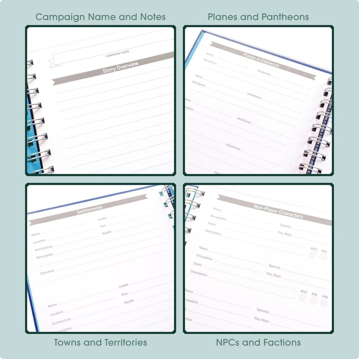 Our Game Master’s Quest Journals are purpose-built to keep track of your campaign notes and handouts. It has everything you need to manage your DnD campaigns without breaking a sweat. There’s space for world building notes, session planning sheets and trackers for NPCs, monsters, magic items, house rules and more! Plus lined, dotted and squared paper, and two sizes of hex grids for planning maps and dungeons.