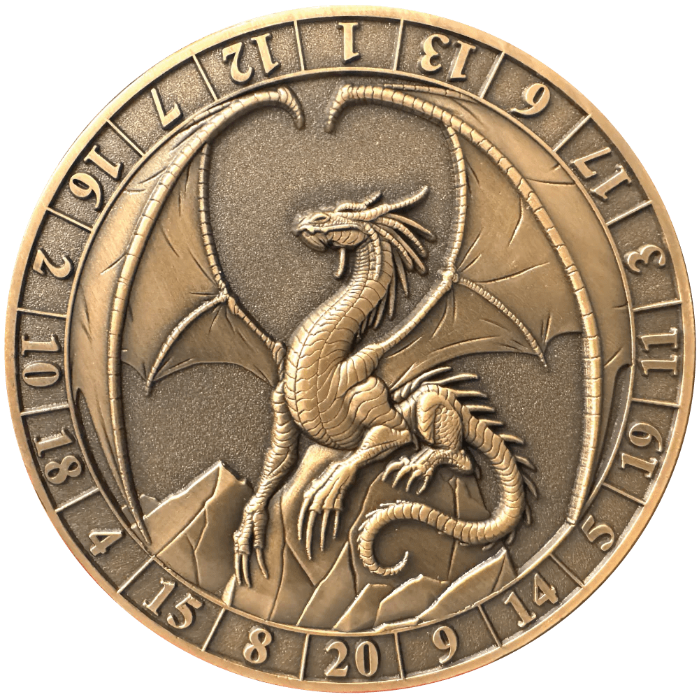 All characters and monsters are depicted on d20 Dice Coins. In the majority of RPG systems, d20's are used to determine hits, saving throws, skill checks, etc. It is the most important dice.