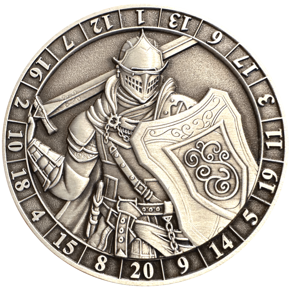 All characters and monsters are depicted on d20 Dice Coins. In the majority of RPG systems, d20's are used to determine hits, saving throws, skill checks, etc. It is the most important dice.