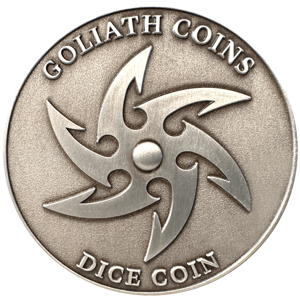 Dice Coins combine elements of a dice and a coin so you can generate random numbers by spinning the coin on a base and stopping it with your finger. A marker line on the base indicates the result.