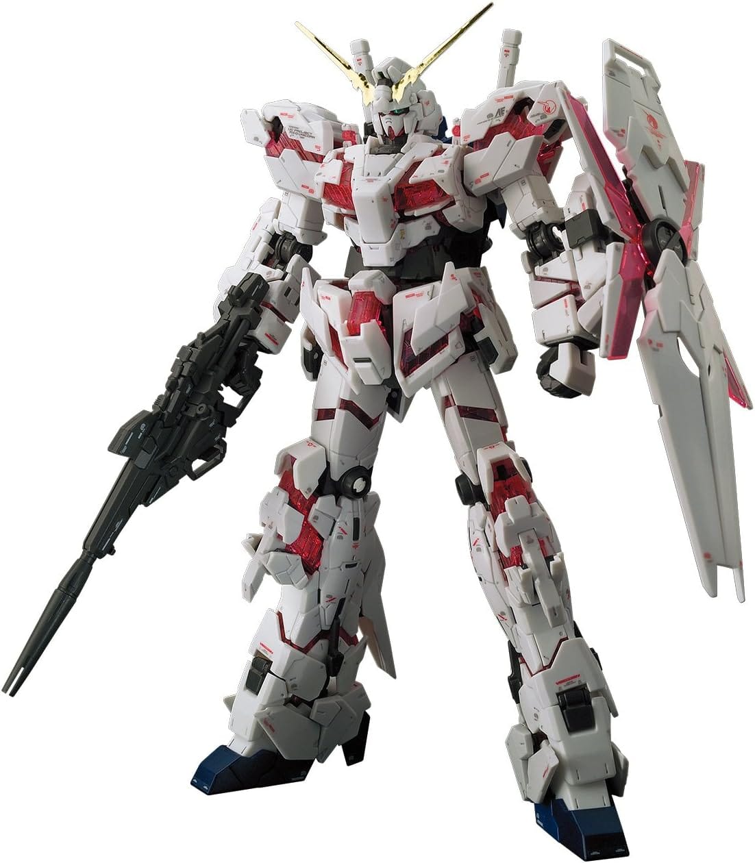 Part of the Gunpla evolution project, the real grade unicorn Gundam features the next level in Gunpla technology and design. From the very beginning, this version was created to be able to perform its iconic destroy mode transformation with stability and ease. The new advanced ms joint incorporates clear translucent plastic for Psyco frame along with locking and linking mechanisms to ensure the smoothest transformation possible. set includes beam Magnum x1, shield x 1, 2x beam sabers, and hyper bazooka x 1. Runner x10. Sticker sheet x1. Instruction manual x1.