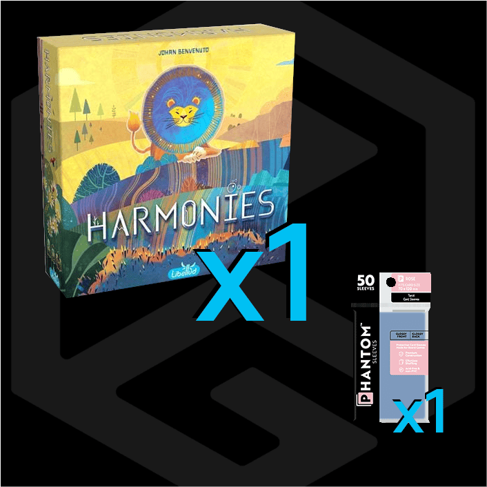 Craft enchanting worlds in Harmonies, a mesmerizing tile-placement game where art meets strategy. Place vibrant colored tiles to sculpt stunning 3D landscapes that attract diverse animals to your personal ecosystem. Every placement matters—tactically combine terrain and wildlife to maximize victory points while building a dreamlike sanctuary. The innovative mechanics blend intuitive rules with surprisingly deep tactical choices, ensuring each game feels fresh and challenging. Solo adventurers rejoice: the game includes a dedicated solo mode plus an expert variant featuring nature spirits that add mystical complexity to your animal encounters. Harmonies captivates with Libellud's signature artistic vision—42 gorgeously illustrated cards bring your imagined worlds to vivid life. The premium components elevate every session: 120 wooden tokens and high-quality cards deliver a tactile, visually stunning experience that rewards both casual players and strategy enthusiasts. Whether competing with friends or enjoying a contemplative solo journey, Harmonies invites you to compose your perfect ecosystem. Bundle includes the complete game plus one Rose Phantom sleeve set.