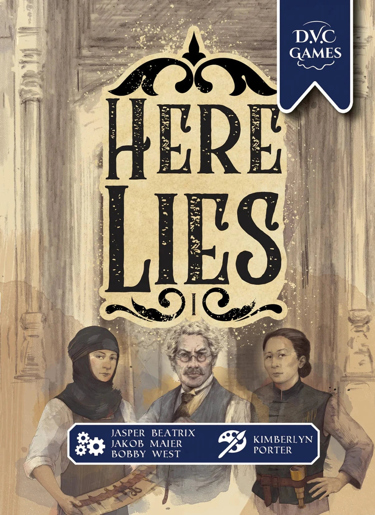 In Here Lies, mystery surrounds every demise. You and your friends, the world's greatest detectives, have gathered to compare your toughest cases. Murders, accidents, betrayals- these are the events of the past you seek to understand. With one player taking the lead, the remaining investigators will inquire about the case, building up a collection of clues that individually do very little, but together create a web of intrigue and storytelling. The lead investigator will listen and guide the team, assessing how close they are getting to their 'eureka moment', with all players winning or losing together.