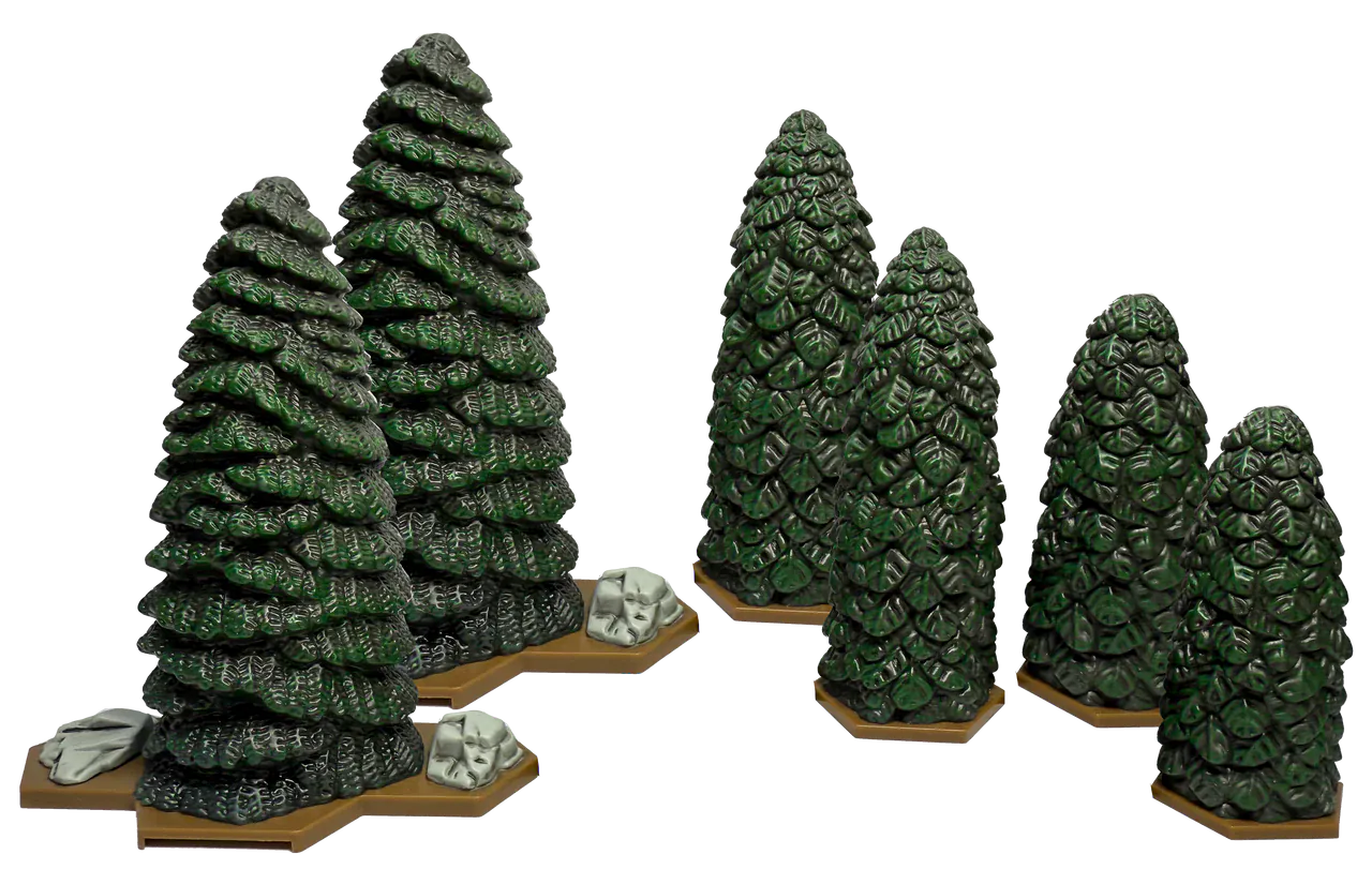 - Highly detailed evergreen trees add dramatic height and realism to your battlefields