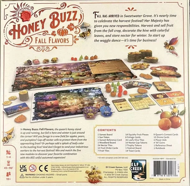 Fall Flavors is an expansion that introduces five new modules for Honey Buzz. You can mix and match to add these modules to the game in any combination!