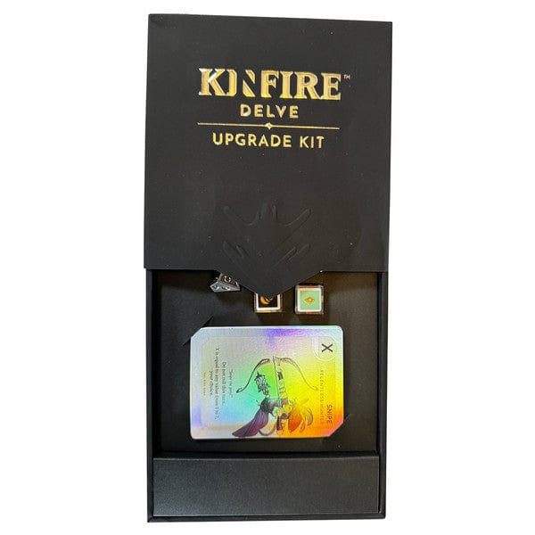 Improve your Kinfire Delve experience with this premium update. The upgrade kit includes six holographic Seeking Lantern cards to light your path, a custom metal 10-sided Countdown die, and four epoxy resin Delve dice. Each piece brings quality and flare to your game, giving you the perfect tools to take on the challenges of the Well Masters with confidence and brilliance.
