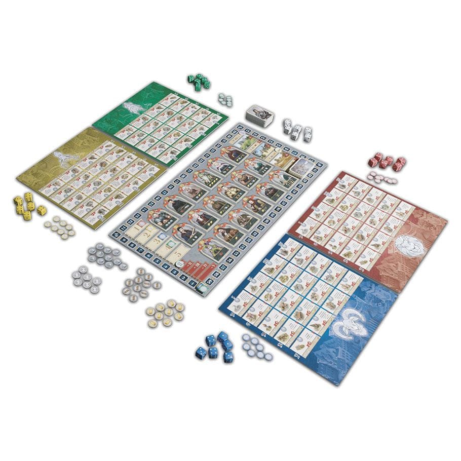 - RICH CONTENT: Includes 1 game board, 5 province sheets, 15 player dice, 60 goods tokens, 120 building tokens, enemy and governor cards, and more.