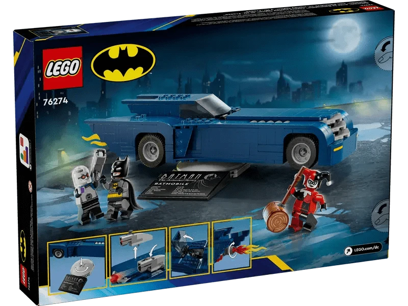 Bring Batman adventures to life with a buildable LEGO® Batmobile and Batman™, Harley Quinn™ and Mr. Freeze™ minifigures. This LEGO Batman toy has 2 detachable stud launchers on the hood and a cockpit entrance that lifts to reveal a driver’s seat and control panel. An exhaust-flame element rotates when the Batmobile moves. Accessories include a hammer, stud launcher and a molded cape for Batman. A rotatable stand and descriptive plate give a 360-degree view of the iconic LEGO Batman Batmobile. For added digital fun, builders can zoom in, rotate sets in 3D and track their progress using the fun, intuitive LEGO Builder app. This is a great gift for kids with a passion for Batman, Super Heroes and cool vehicles.