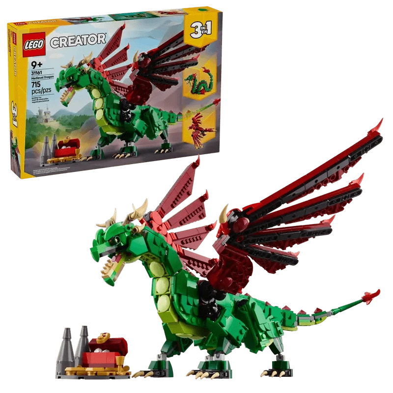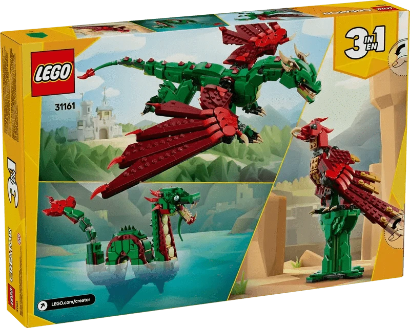 • 3 medieval creature toys in 1 box – The LEGO® Creator 3in1 Medieval Dragon toy lets boys and girls aged 9 and up build and rebuild 3 different fantasy animal toys using the same bricks
