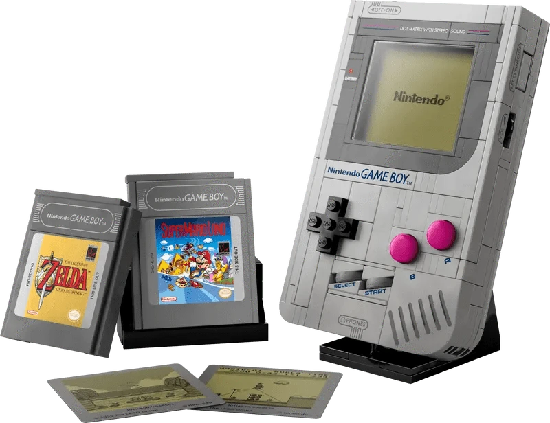 - Customize your display – Includes interchangeable, brick-built The Legend of Zelda™: Link's Awakening or Super Mario Land™ Game Boy™ Game Paks and lenticular screens, plus a Nintendo® start screen