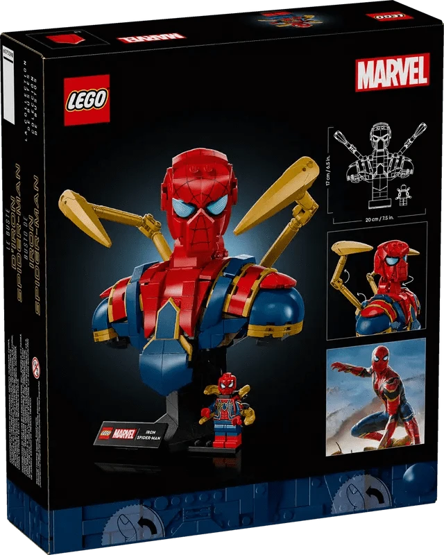 - Adult building set for Marvel fans – The Iron Spider-Man Bust is a collectible build-and-display set for experienced model-makers and adult Super Hero enthusiasts