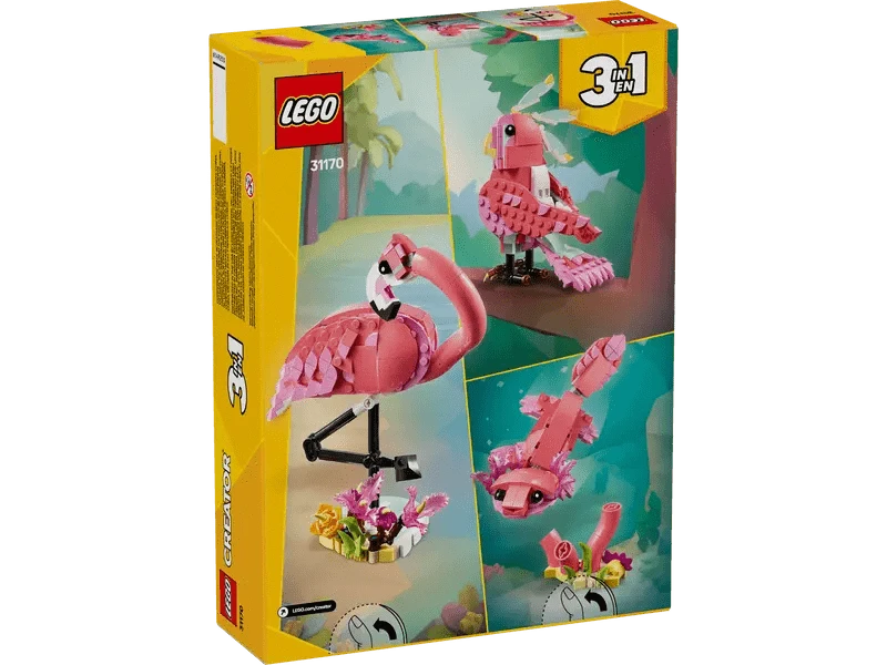 - 3 wild animal building options in 1 box – The LEGO® Creator 3in1 Wild Animals: Pink Flamingo toy set lets girls and boys aged 8 and up build and rebuild 3 different animal figures with the same bricks