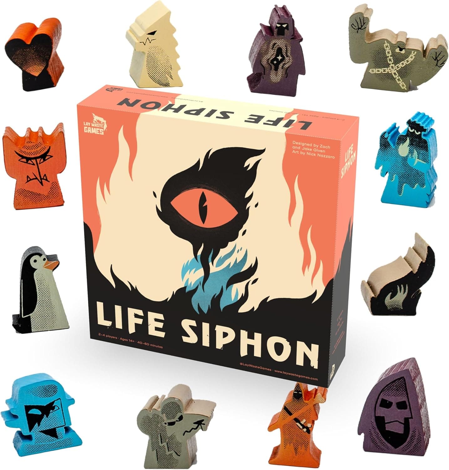 Each player's goal in Life Siphon is to defeat the player to their left, and the game ends when the first player drops to zero health, meaning you must plan your strategy to be effective offensively against one player while defending against another. Since everything costs your own health, the heavier your offense, the more vulnerable you are. You may even find yourself aiding your attacker to give you the opportunity to make the killing blow.