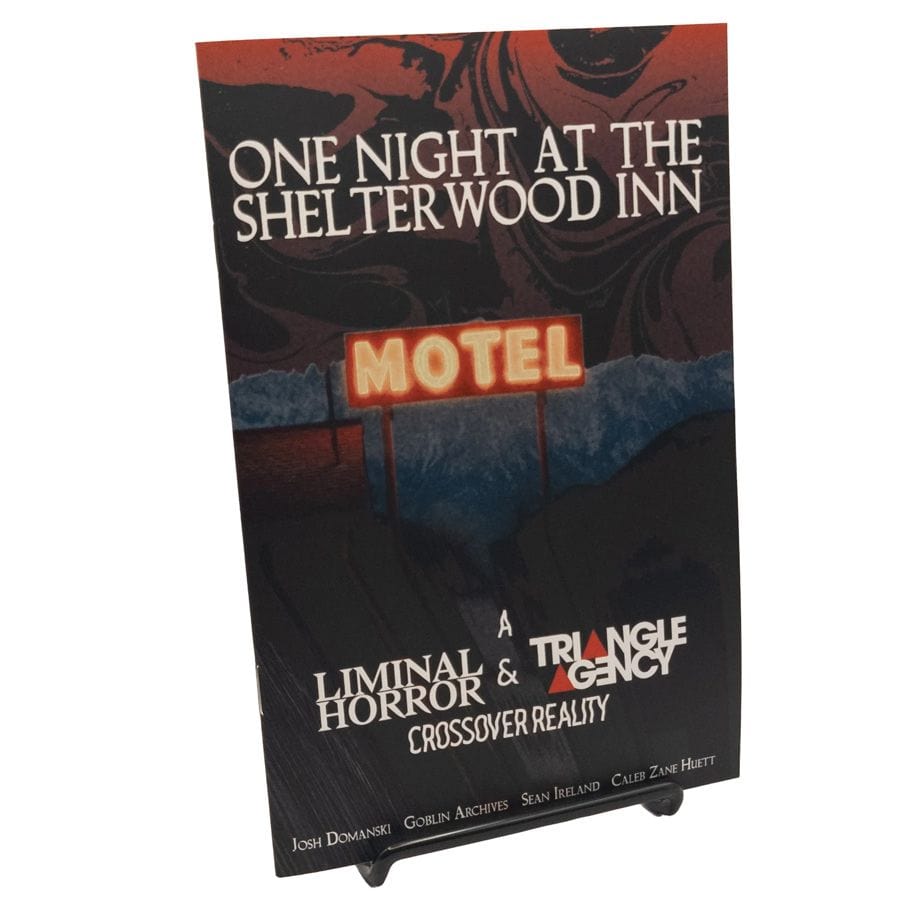 One Night at the Shelterwood Inn is a crossover adventure playable in two game systems. With Liminal Horror, players take on the roles of unfortunate souls stranded in a lonely hotel, with something sinister hiding beneath the surface. With Triangle Agency, players take the roles of Field Agents straddling the line between containing a paranormal phenomenon and maintaining cover.