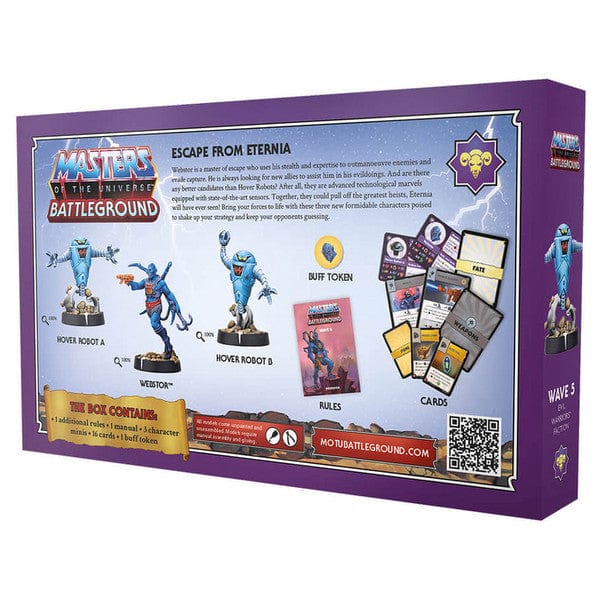 Webstor is a master of escape who uses his stealth and expertise to outmanoeuvre enemies and evade capture. He is always looking for new allies to assist him in his evildoings. And are there any better candidates than Hover Robots? After all, they are advanced technological marvels equipped with state-of-the-art sensors. Together, they could pull off the greatest heists, Eternia will have ever seen! Bring your forces to life with these three new formidable characters poised to shake up your strategy and keep your opponents guessing.