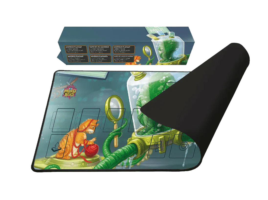 The Mindbug Playmat feature original art printed atop a high-quality, slip-resistant rubber base. The double-stitched edge will keep the playmat going for many battles to come without fear of the opposition. Playmat designed for use for 1 player.