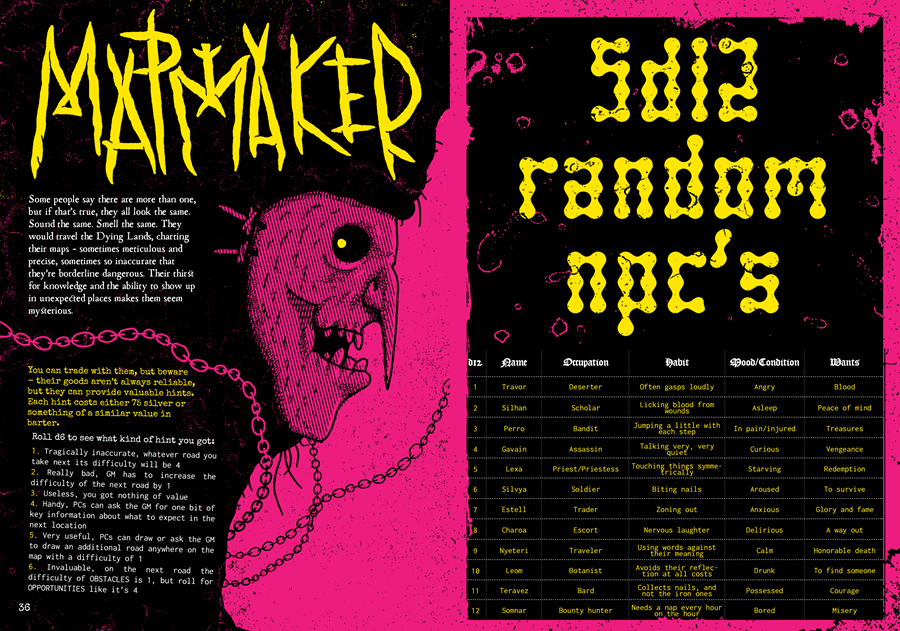 A MÖRK BORG compatible region generator, an essential GM tool that allows you to create short adventures and whole campaigns in minutes (44 pages).