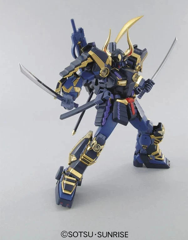The Mk-II Musha Gundam has arrived! Bandai has once again raised the bar with this, the latest in the Master Grade line, using its newer 'undergate' technology. This engineering trick makes it possible to clip parts off the runner without leaving nub marks in obvious places. Bandai puts it to good use on the gold plated parts. Included with the two runners of gold plated parts are silver plated blades for the katana and the cylinders in the ankles! Polycaps are included to allow the second Musha Gundam to be positioned in a variety of ways. A length of mesh pipe is included for use during construction of various parts of the frame. The MK-2 comes with two Kotetsu Maru swords, mountable on the skirts, and its Senkou maru Naginata, and the Shoryu Maru gun which attach to the back of the MS. Two sets of marking stickers are also provided!