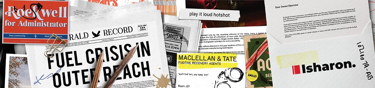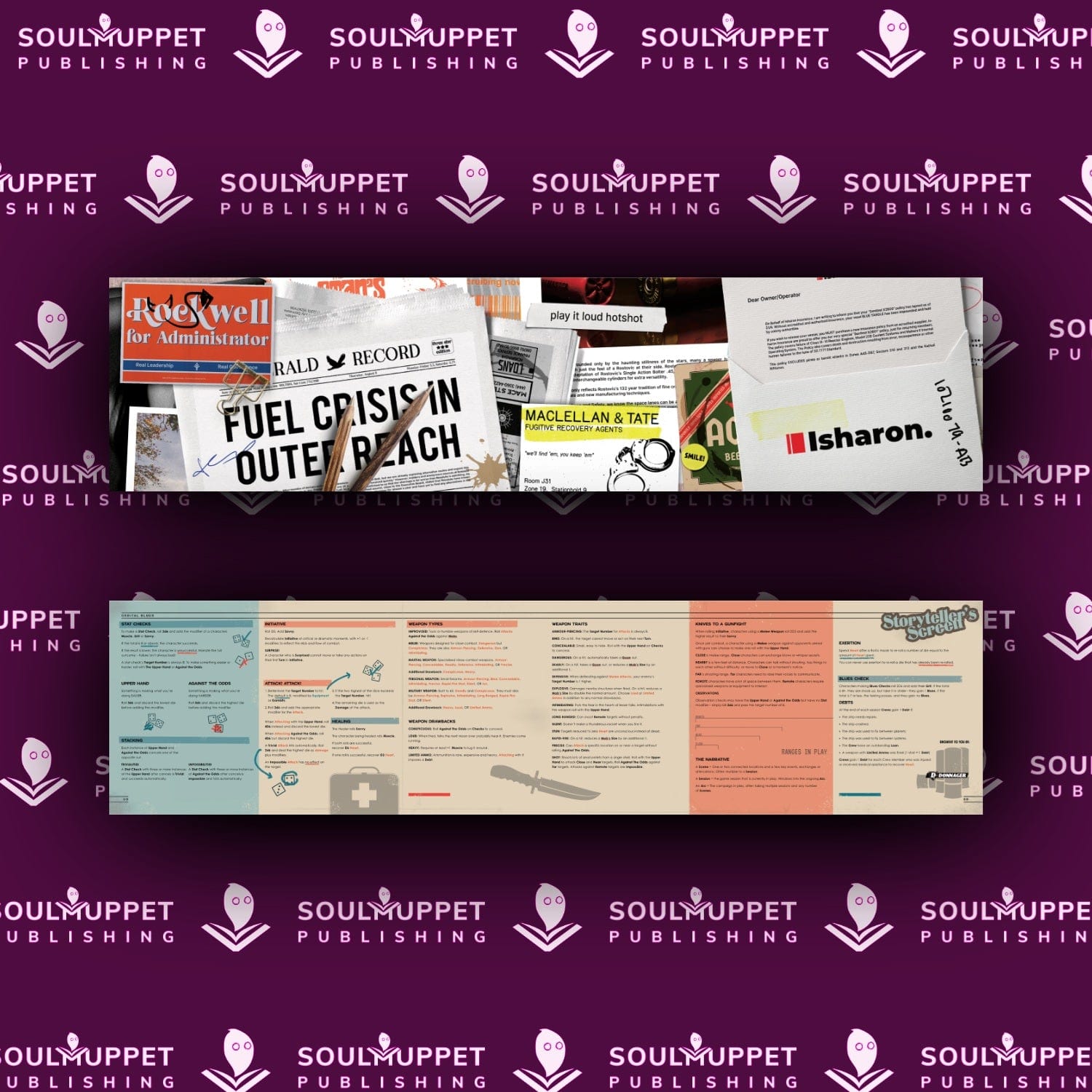A 4-panel Orbital Blues GM screen to help run your game smoothly and create atmosphere. It's super slim and portable and will fit in your bag nicely alongside your Orbital Blues.